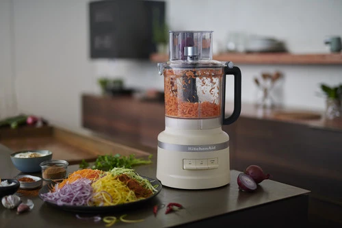 De foodprocessor is traploos instelbaar, zodat je de snelheid nauwkeurig aanpast aan de bereiding.