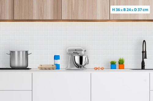De KitchenAid Artisan Mixer 5KSM125EFG Mat Grey heeft een directe aandrijving van de motor, zodat er minder vermogen nodig is om veel kracht te leveren. Fijn, want dit maakt jouw keukenmixer energiezuiniger. De motor is krachtig genoeg om ook af en toe zwaar deeg te kneden. Zo maak je niet alleen taarten en cakes, maar zet je ook jouw eigen pizza of brood op tafel. De mengkom heeft een handgreep, zodat je ‘m gemakkelijk pakt en op de mixer bevestigt. Je maakt in één keer beslag voor 1,5 taart in de mengkom van 4,8 liter. Bij deze keukenmixer zit een deeghaak voor het kneden van deeg, een menghaak voor het mengen van zware mengsels en een draadgarde voor het luchtig stijfslaan van slagroom.