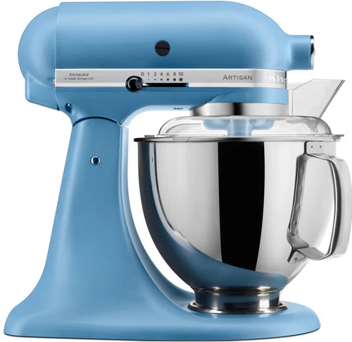 Met de KitchenAid Artisan Mixer 5KSM175PS maak jij met weinig inspanning deeg en beslag. Deze krachtige keukenmixer heeft een vermogen van 300 watt, maar de motor bevindt zich in de kop. Hierdoor kan hij met gemak zwaar brooddeeg aan, want er gaat geen energie verloren tussen de menghaak en de motor. De kop van de KitchenAid is kantelbaar, hierdoor verwissel je de deeghaken eenvoudig. Doordat er 2 mengkommen worden meegeleverd hoef je tussendoor niet af te wassen en het antispatdeksel voorkomt een aanrecht vol beslagspetters. Wil je de mogelijkheden van je KitchenAid Artisan verder uitbreiden? Er is een groot assortiment opzetstukken verkrijgbaar. Deze bevestig je op het aansluitpunt aan de voorzijde.