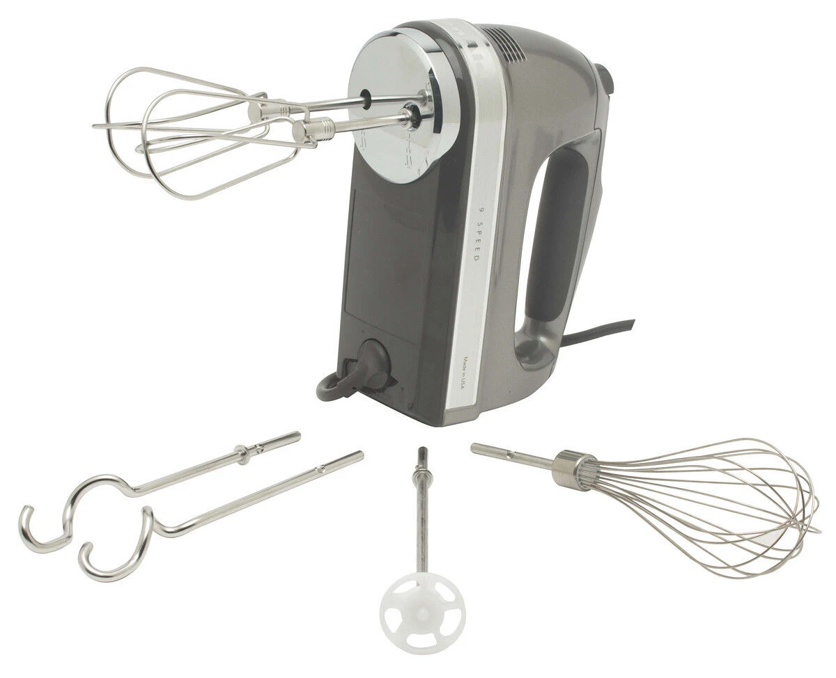 Deze handmixer van KitchenAid is gemaakt van grijs kunststof en heeft een vermogen van 85 W. De mixer is eenvoudig in gebruik en beschikt over 9 snelheden. Voor het kloppen van room en eiwit, het kneden van deeg en mengen van ingrediënten.
