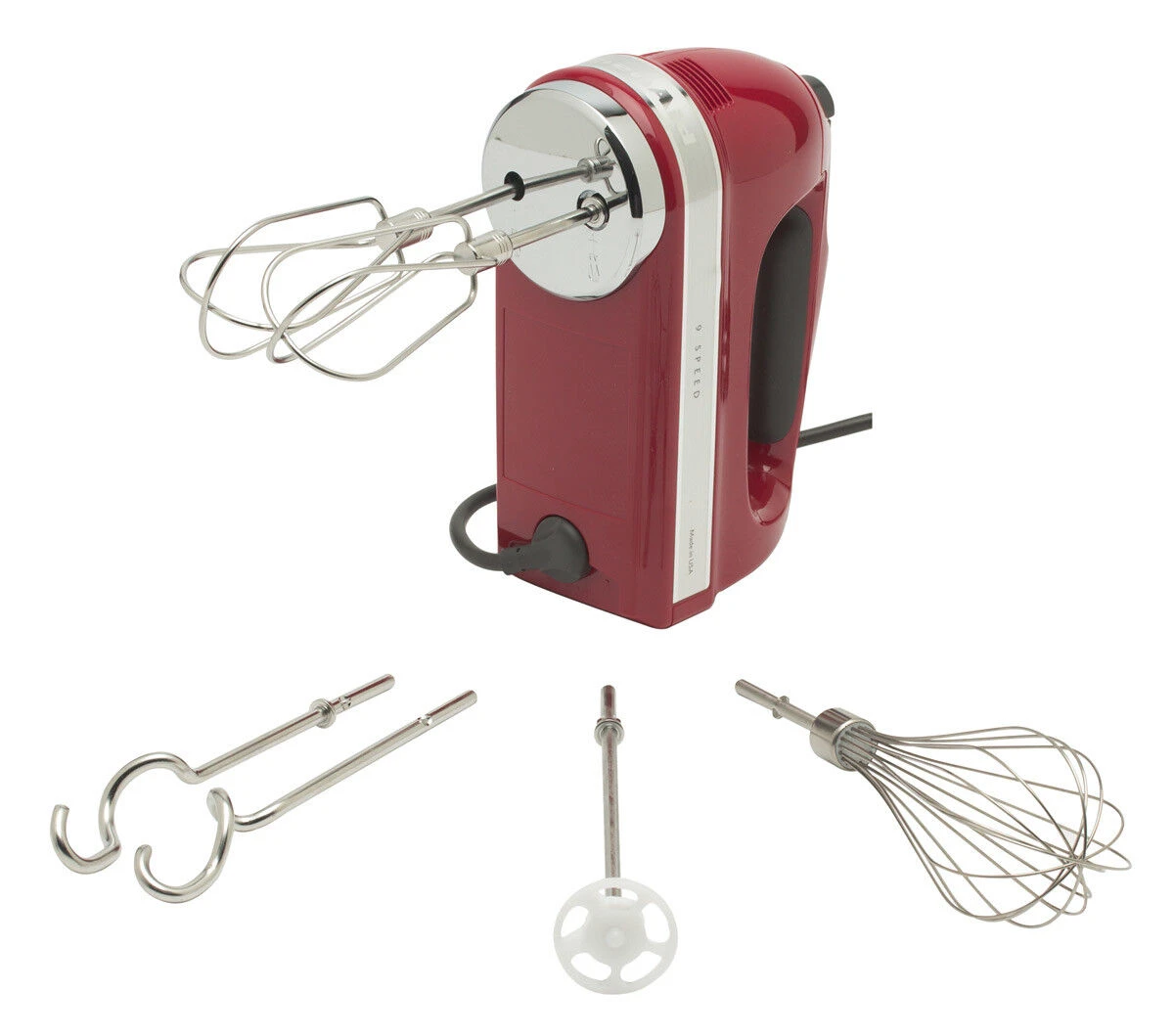 Deze handmixer van KitchenAid is gemaakt van rood kunststof en heeft een vermogen van 85 W. De mixer is eenvoudig in gebruik en beschikt over 9 snelheden. Voor het kloppen van room en eiwit, het kneden van deeg en mengen van ingrediënten.