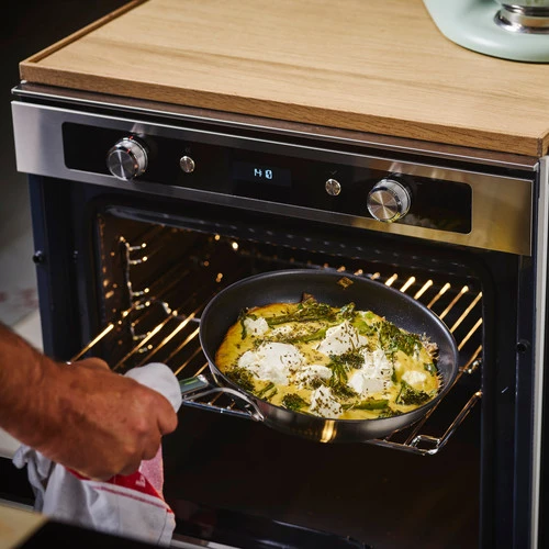 De bakpannen zijn voor alle warmtebronnen, inclusief inductie en te gebruiken in de oven tot aan 160 graden Celsius.